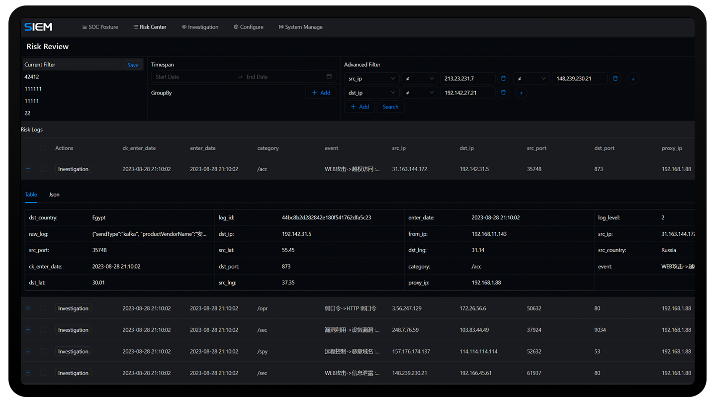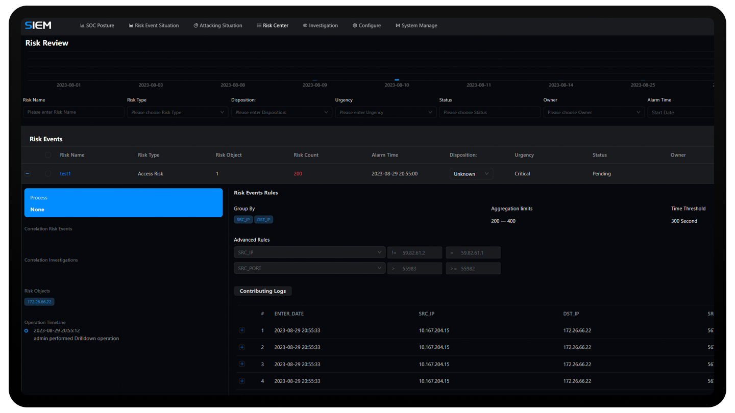 يقدم مركز عمليات الأمن (SOC) من Ansen مجموعة قوية من وظائف معالجة الأحداث، مما يتيح لك تخصيص سير العمل للأحداث الأمنية وفرز الحوادث الأمنية بسرعة لمزيد من التحقيق. يمكن لمركز عمليات الأمن (SOC) من Ansen مساعدتك في إدارة الحوادث الأمنية والاستجابة لها بكفاءة، بالإضافة إلى تنسيق جهود فريق الأمان الخاص بك.